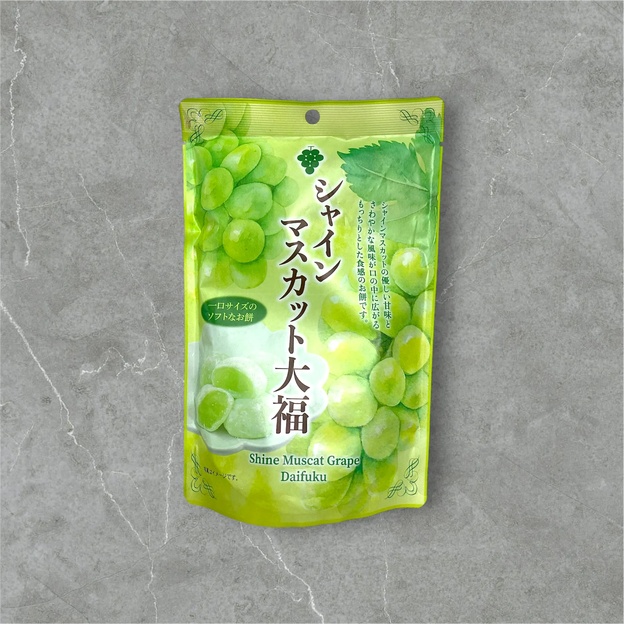 マスカット果汁入りの爽やかな甘味と風味を、もっちり食感のお餅で。食べたい分だけ食べやすい個包装。お土産としてもオススメです。